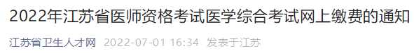 2022年江蘇省醫(yī)師資格考試醫(yī)學(xué)綜合考試網(wǎng)上繳費(fèi)的通知