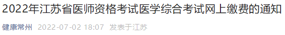 常州考點(diǎn)2022年江蘇省醫(yī)師資格考試醫(yī)學(xué)綜合考試網(wǎng)上繳費(fèi)的通知