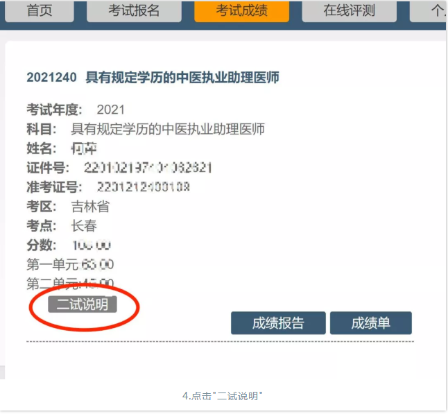 2.查看成績后,點(diǎn)擊“二試說明”;