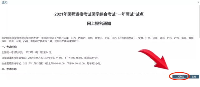 5.仔細(xì)閱讀彈出的通知,點(diǎn)擊右下角"二試報名";