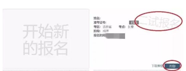 7.自動返回本頁面,出現(xiàn)“二試報名”灰色字樣說明報名成功;