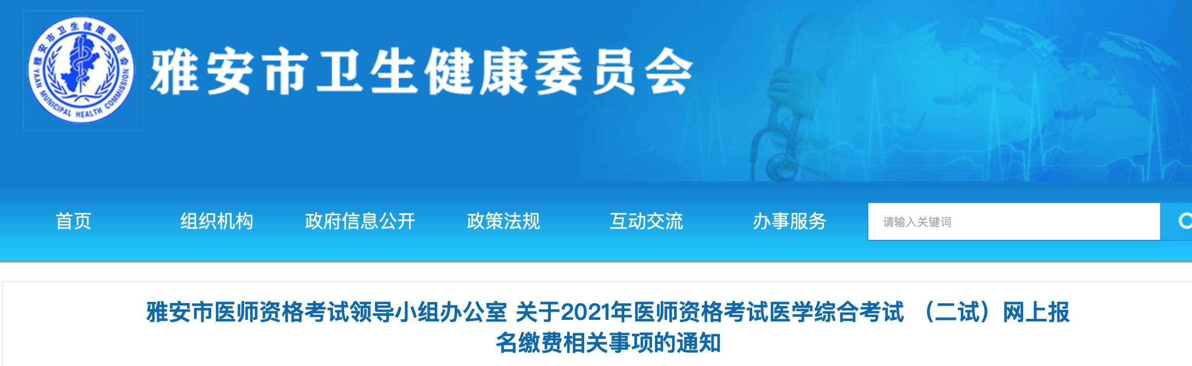 雅安市關(guān)于2021年醫(yī)師資格考試醫(yī)學(xué)綜合考試 (二試)網(wǎng)上報(bào)名繳費(fèi)相關(guān)事項(xiàng)的通知