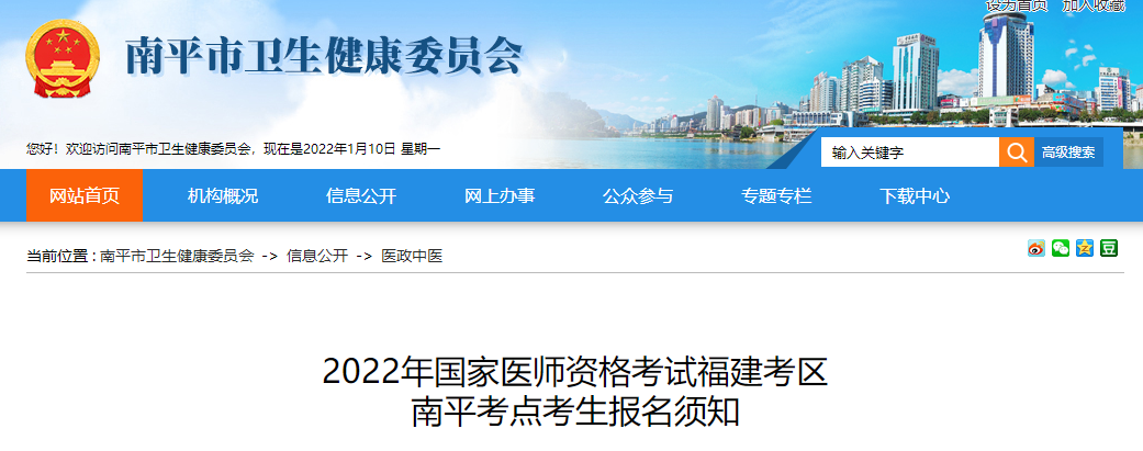 福建考區(qū)南平考點2022年國家醫(yī)師資格考試報名工作的有關(guān)事項通知