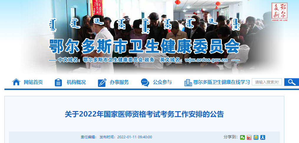 鄂爾多斯考點2022年國家醫(yī)師資格考試考務工作安排的公告