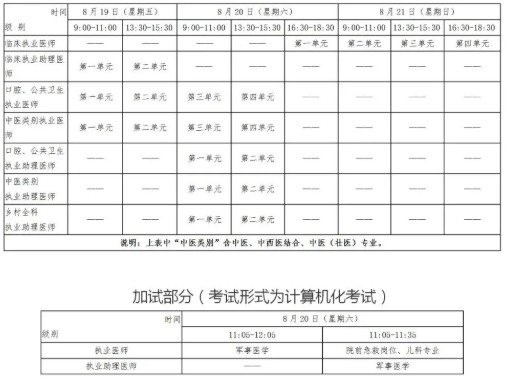 2022年,重慶考區(qū)醫(yī)師資格考試醫(yī)學(xué)綜合考試所有類別、級別(含加試)全部實行計算機(jī)化考試,全國統(tǒng)一考試時間如下: