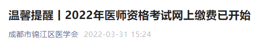 成都市錦江區(qū)溫馨提醒丨2022年醫(yī)師資格考試網(wǎng)上繳費已開始