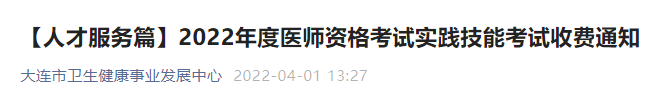 【大連轉發(fā)】2022年度醫(yī)師資格考試實踐技能考試收費通知