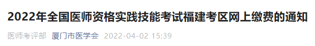 廈門市2022年全國(guó)醫(yī)師資格實(shí)踐技能考試福建考區(qū)網(wǎng)上繳費(fèi)的通知