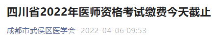 成都武侯區(qū)2022年醫(yī)師資格考試?yán)U費今天截止!