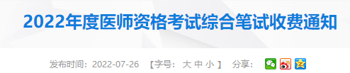 2022年遼寧省醫(yī)師資格考試綜合筆試收費標準如下: