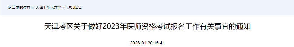 天津考區(qū)關(guān)于做好2023年醫(yī)師資格考試報名工作有關(guān)事宜的通知