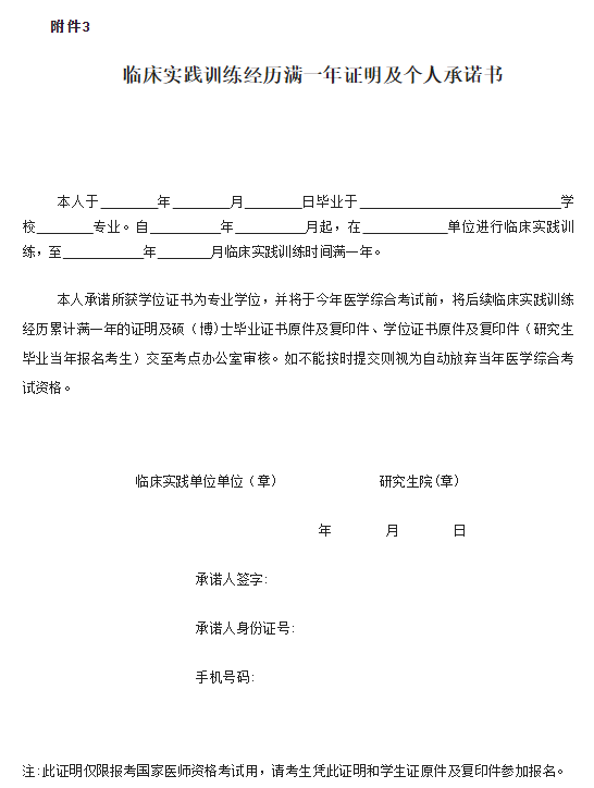 江西吉安考點(diǎn)|臨床實(shí)踐訓(xùn)練經(jīng)歷滿一年證明及個(gè)人承諾書