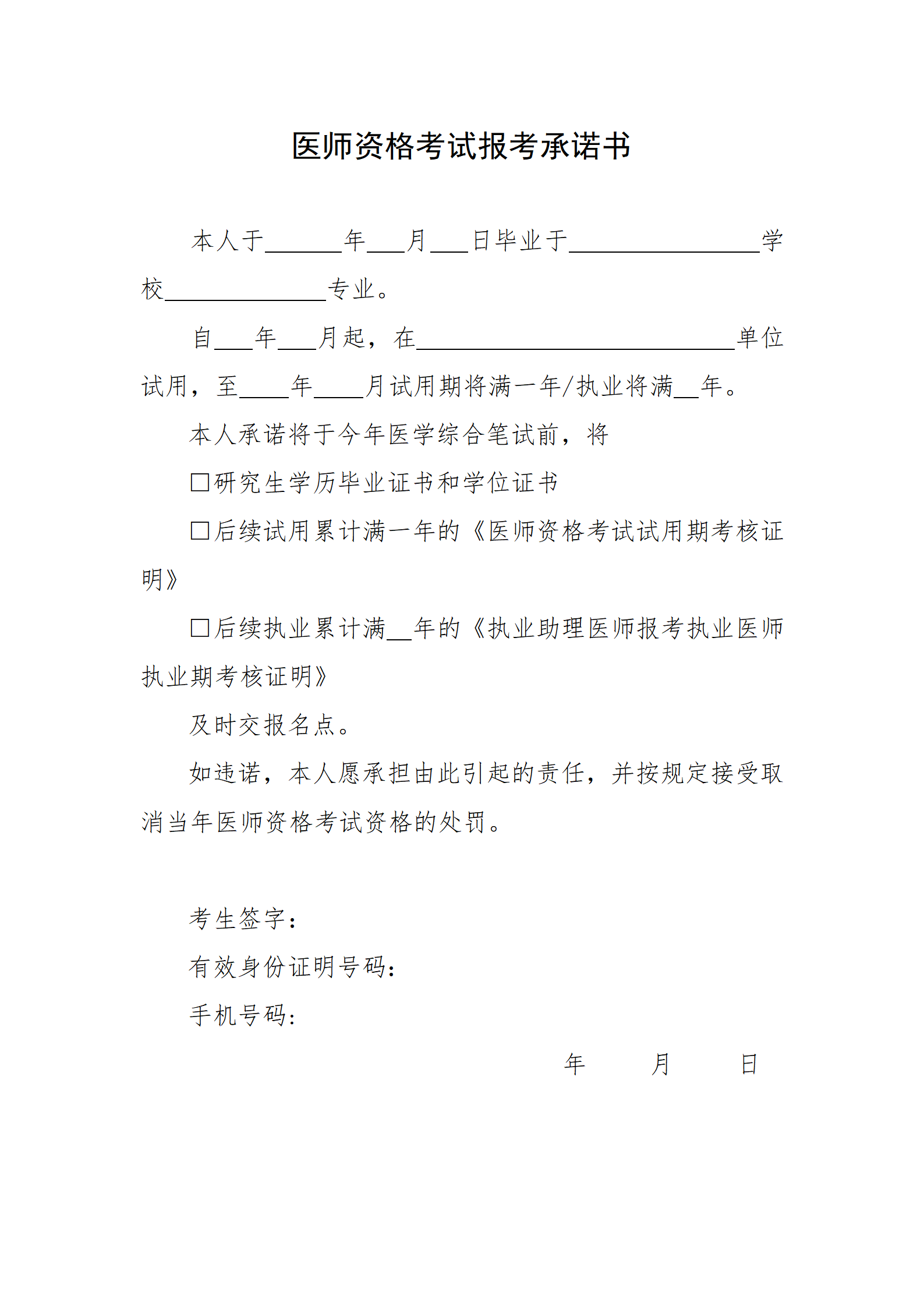 廣州市2023年醫(yī)師資格考試報考承諾書