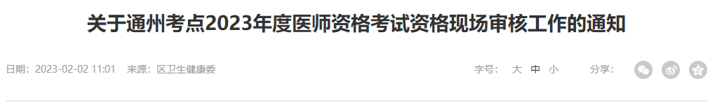 關(guān)于通州考點2023年度醫(yī)師資格考試資格現(xiàn)場審核工作的通知