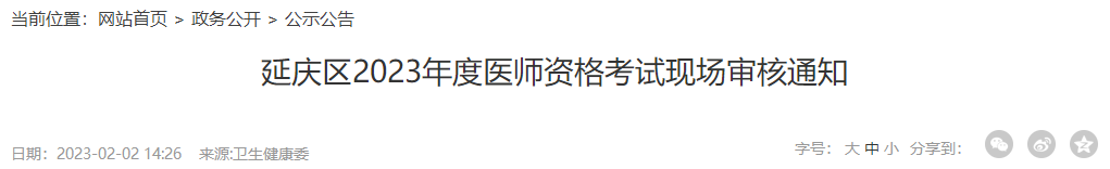 北京延慶區(qū)2023年度醫(yī)師資格考試現(xiàn)場審核通知