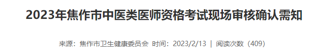 關(guān)于2023年河南焦作市中醫(yī)類醫(yī)師資格考試現(xiàn)場審核確認(rèn)須知