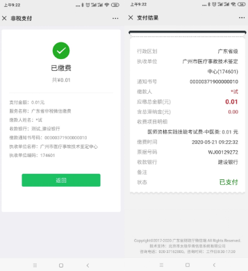 五、成功支付后,點(diǎn)擊“返回”,可以看到支付結(jié)果。