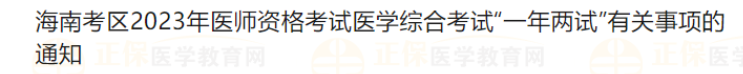 海南考區(qū)2023年醫(yī)師資格考試醫(yī)學(xué)綜合考試“一年兩試”有關(guān)事項(xiàng)的通知