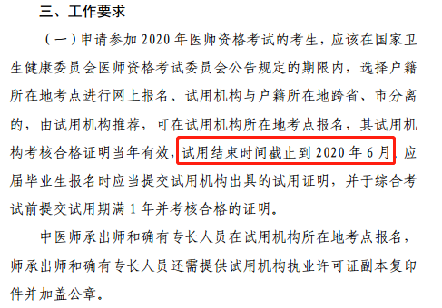 伊春2020年醫(yī)師資格考試試用期證明截止時(shí)間