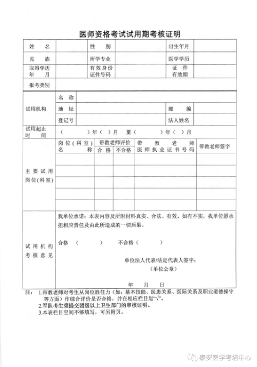 泰安市2020年醫(yī)師資格考試報(bào)名材料的相關(guān)說(shuō)明