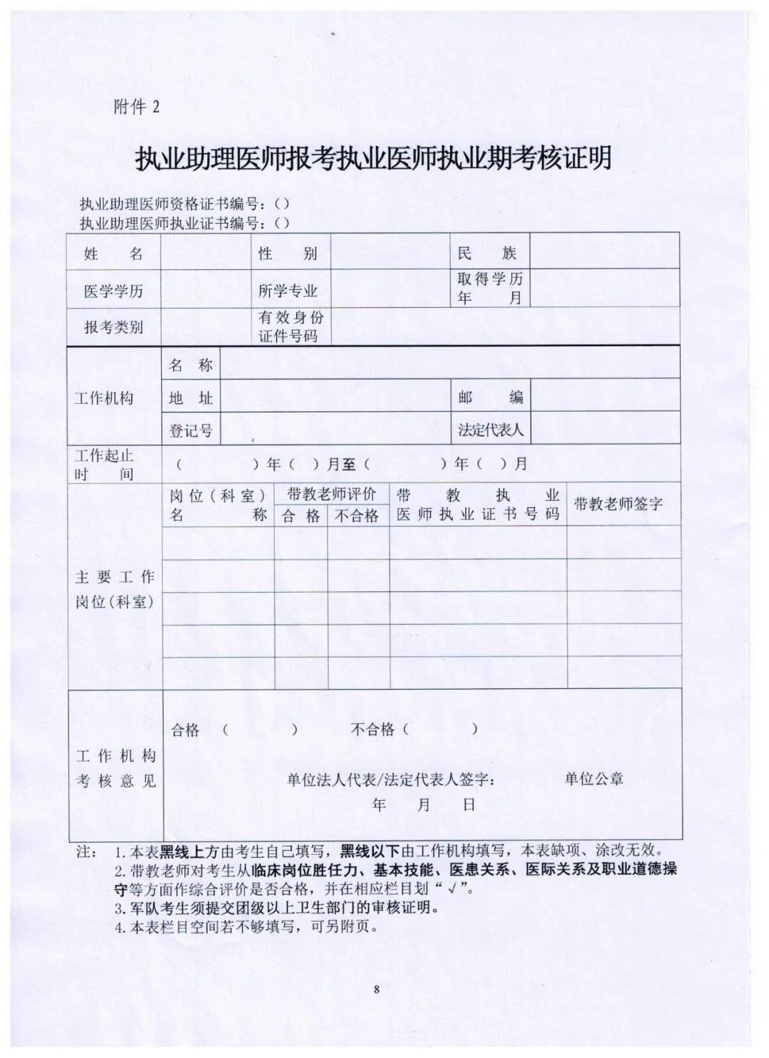 (4)《醫(yī)師資格考試試用期考核證明》(附件1)。