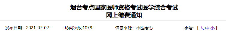 2021年煙臺(tái)考點(diǎn)國(guó)家醫(yī)師資格考試醫(yī)學(xué)綜合筆試網(wǎng)上繳費(fèi)的通知