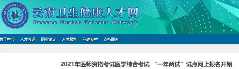 云南考區(qū)2021年醫(yī)師資格考試醫(yī)學(xué)綜合考試“一年兩試”網(wǎng)上報(bào)名繳費(fèi)有關(guān)事項(xiàng)的通知
