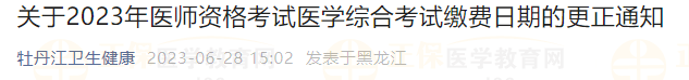 - · 牡丹江考點(diǎn)2023醫(yī)師資格考試醫(yī)學(xué)綜合考試?yán)U費(fèi)日期的更正通知
