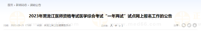 根據(jù)國家醫(yī)師資格考試工作安排,2023年黑龍江醫(yī)師資格考試醫(yī)學(xué)綜合考試“一年兩試”試點網(wǎng)上報名將于9月22日開始,現(xiàn)將有關(guān)事項通知如下: