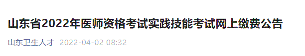 山東省2022年醫(yī)師資格考試實踐技能考試網(wǎng)上繳費公告