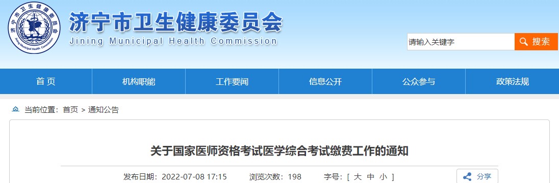 濟(jì)寧考點(diǎn)關(guān)于2022年國(guó)家醫(yī)師資格考試醫(yī)學(xué)綜合考試?yán)U費(fèi)工作的通知