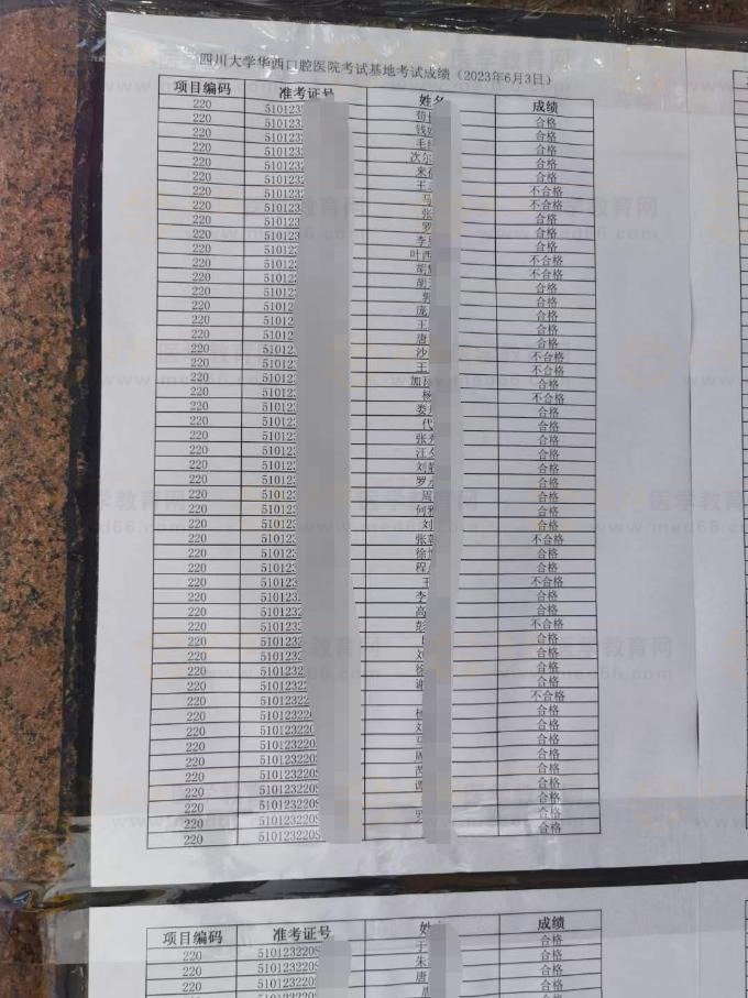 成都考點2023醫(yī)師資格實踐技能考試成績單公示(口腔類別)
