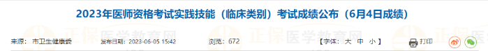 原文通知標(biāo)題:2023年醫(yī)師資格考試實踐技能(臨床類別)考試成績公布(6月6日成績)
