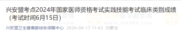 內(nèi)蒙古興安盟考點(diǎn)2024年臨床類別醫(yī)師實(shí)踐技能考試成績(jī)查看(6月15日)