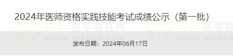 2024年醫(yī)師資格實(shí)踐技能考試成績(jī)公示(第一批)