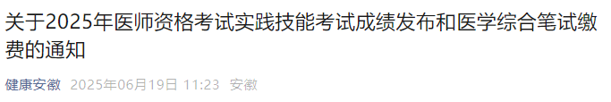 官方速報!安徽省2025年醫(yī)師資格實踐技能考試成績出分時間已確定!
