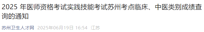 速查!江蘇蘇州2025年臨床|中醫(yī)醫(yī)師資格實(shí)踐技能考試成績(jī)已公布!