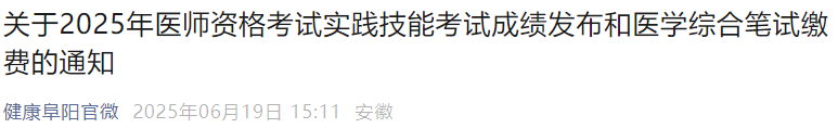 現(xiàn)將2025年安徽考區(qū)醫(yī)師資格實踐技能考試成績查詢和筆試繳費事宜,通知如下: