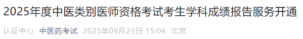 官方速報!2025年中醫(yī)類別醫(yī)師資格考試考生學(xué)科成績報告服務(wù)開通