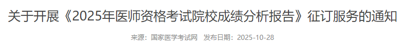國家醫(yī)學(xué)考試網(wǎng)官方發(fā)布關(guān)于開展《2025年醫(yī)師資格考試院校成績分析報(bào)告》征訂服務(wù)的通知如下: