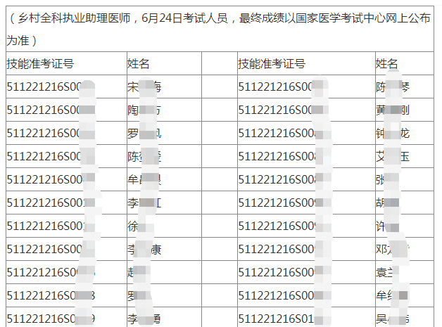 四川瀘州2021年鄉(xiāng)村全科助理醫(yī)師實踐技能考試合格名單(24日216類別考試考生)
