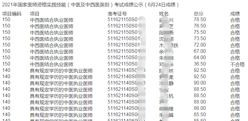 四川涼山2021年國家醫(yī)師資格實(shí)踐技能(中醫(yī)及中西醫(yī)類別)考試成績公示(6月24日成績)