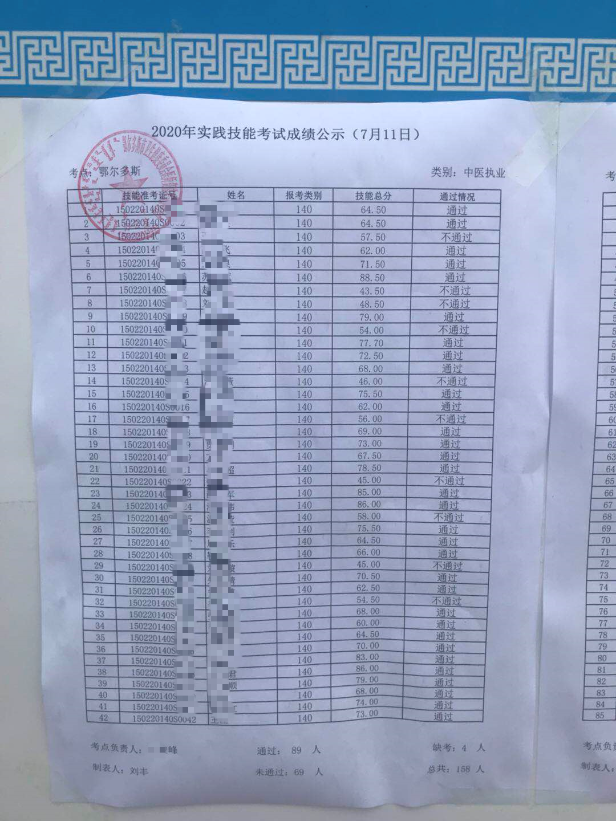 內(nèi)蒙古鄂爾多斯考點(diǎn)2020中醫(yī)執(zhí)業(yè)醫(yī)師實(shí)踐技能考試成績(jī)已公布(7月11日)