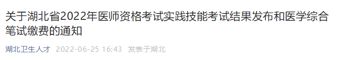 湖北考區(qū)2022年醫(yī)師資格考試實(shí)踐技能考試結(jié)果發(fā)布和醫(yī)學(xué)綜合筆試?yán)U費(fèi)的通知