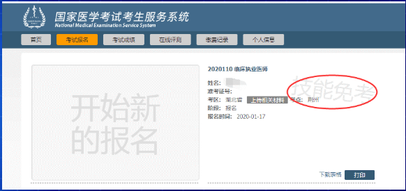 第三步:在考生個(gè)人報(bào)名界面中,點(diǎn)“考試報(bào)名”即可查看技能考試結(jié)果:“未通過(guò)”、“技能通過(guò)”、“技能免考”。