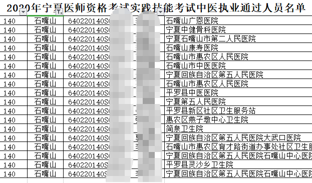 以上為部分寧夏考區(qū)2020年國家醫(yī)師資格實踐技能考試合格人員名單。完整名單信息請在寧夏醫(yī)學會官方網(wǎng)站查詢。也可以直接下載附件查看。