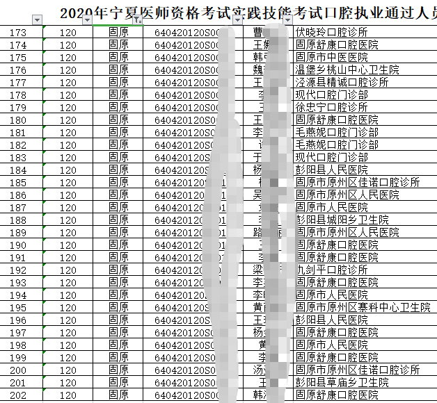 2020年固原考點口腔執(zhí)業(yè)醫(yī)師資格技能考試合格名單