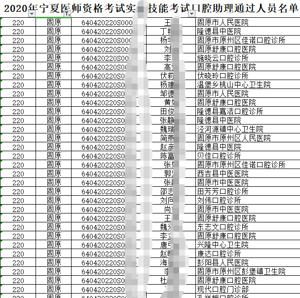 2020年口腔助理醫(yī)師資格實(shí)踐技能考試固原考點(diǎn)合格準(zhǔn)考證號