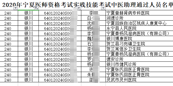 中醫(yī)執(zhí)業(yè)助理醫(yī)師實(shí)踐技能考試2020年銀川考點(diǎn)通過(guò)考生準(zhǔn)考證號(hào)