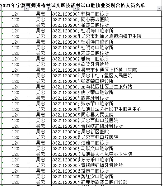 吳忠市2021年口腔執(zhí)業(yè)醫(yī)師120類別醫(yī)師資格實(shí)踐技能合格名單